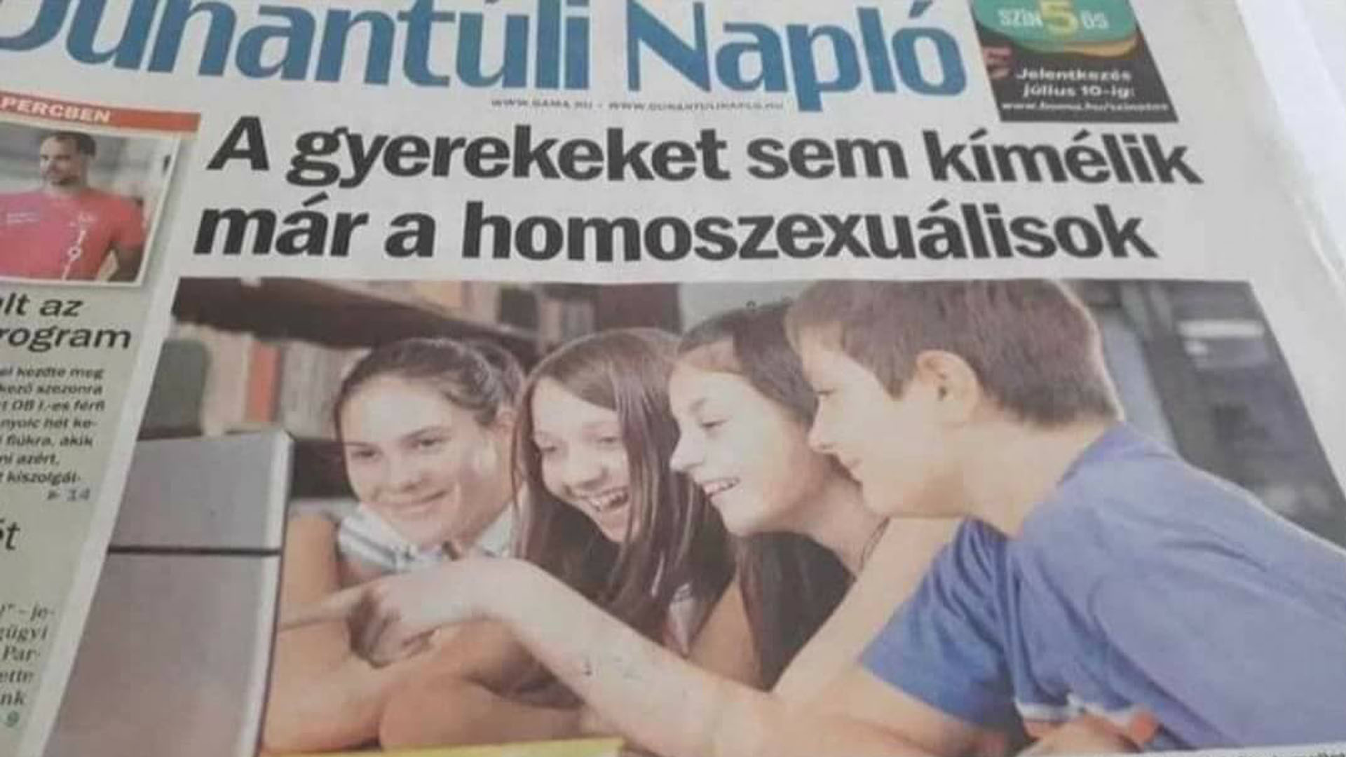 A Dunantúli Napló címoldala talán még a kétkedőket is meggyőzi, hogy a sötét hülyeségnek milyen szennyes áradata szabadult most föl a kollektív psziché pöcegödreiből ennek a homofób törvénynek a következményeként. És a törvény még hatályba sem lépett, amikor ez a címlap így, ezzel a szöveggel megjelent!